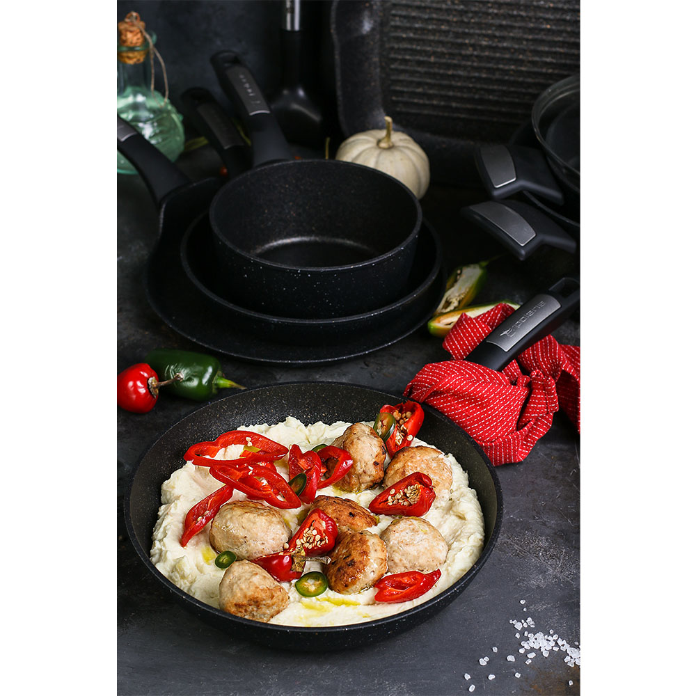 MEGASTONE PRO-5 Инновационное 5-слойное антипригарное покрытие с керамической крошкой.Материал - кованый алюминий.