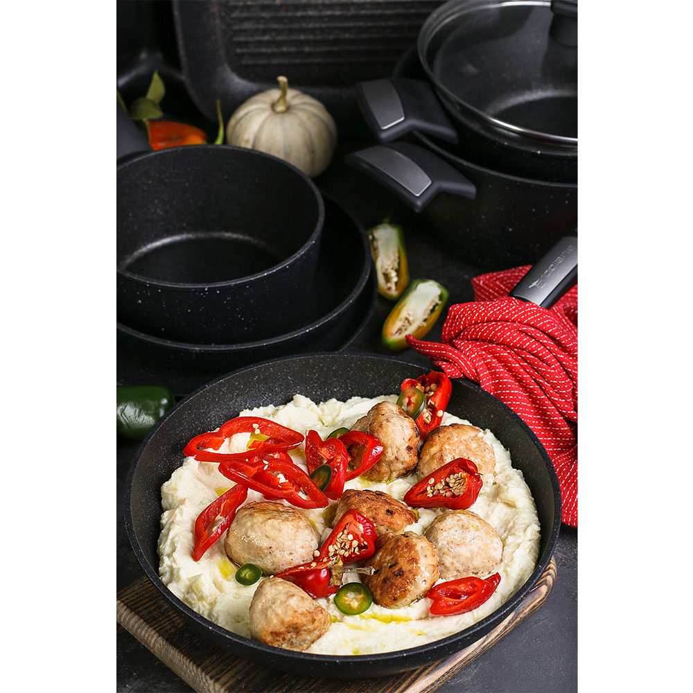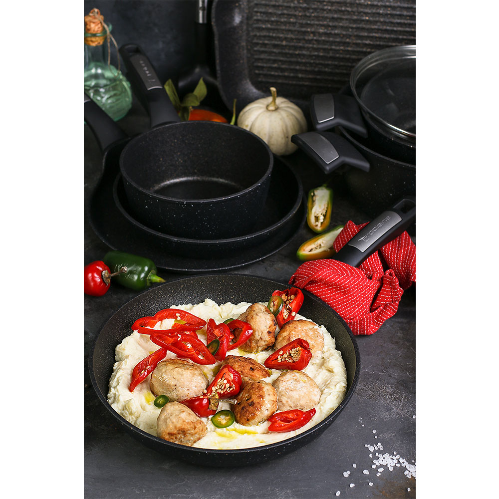 MEGASTONE PRO-5 Инновационное 5-слойное антипригарное покрытие с керамической крошкой.Материал - кованый алюминий.