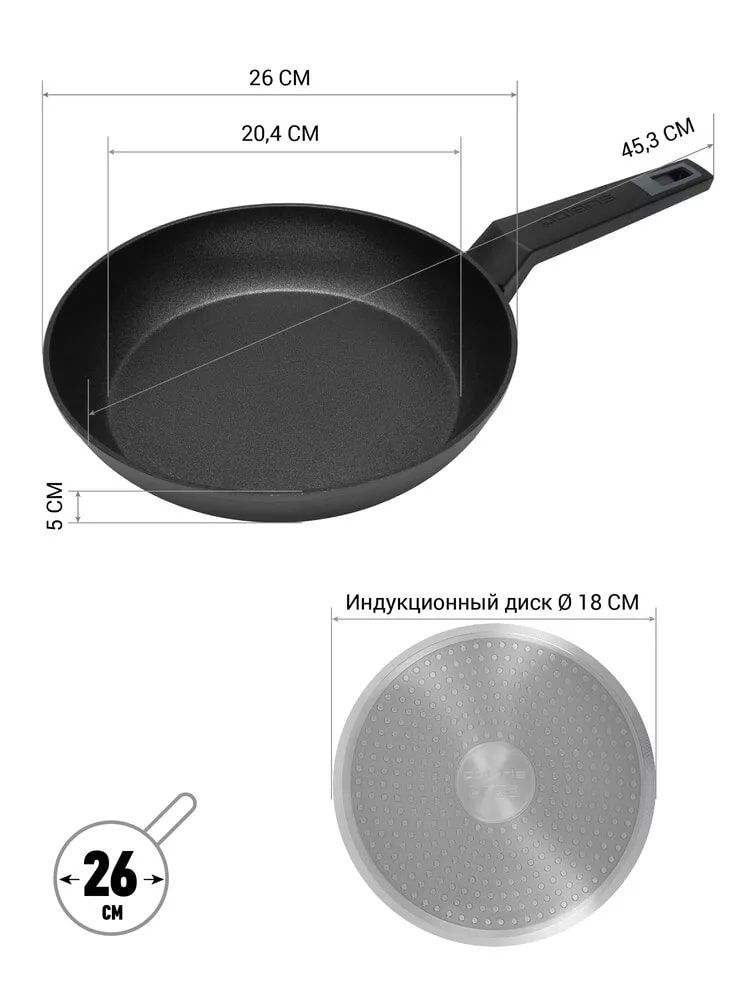 Сковорода диаметр 26 смАнтипригарная сковорода 26 см - идеальный выбор для приготовления различных блюд. Благодаря высококачественному кованому алюминию, из которого изготовлена